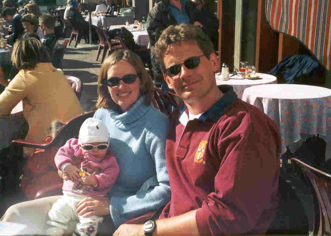 Hier sind wir im Lieblingscafé meiner Eltern in St. Moritz. Dort haben wir nach dem Skilaufen die schöne Aussicht bei Sonnenschein genossen. Meine scharfe Sonnenbrille habe ich immer ganz brav aufgelassen.
